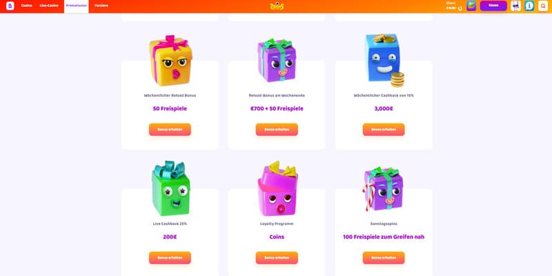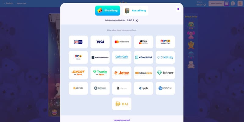 Nach Registrierung können Sie den Willkommensbonus aktiveren. Sie müssen die Ersteinzahlung vornehmen, und schon kann es losgehen. An 20 € gibt es Bonus und ab 10 € bekommen Sie nur die Bonuskrabbe.