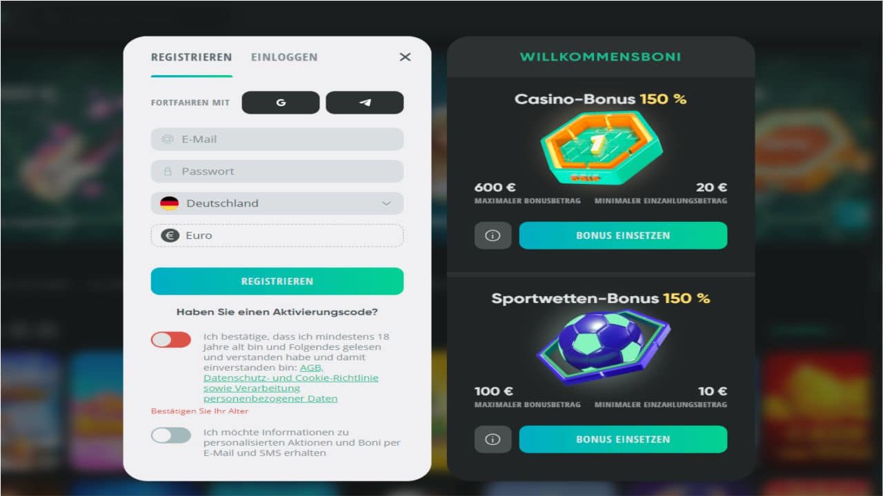 Ganz einfach über unseren Link anmelden. Verwenden Sie den Bonuscode.