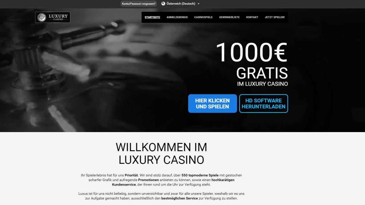 Das Luxury Casino hat sich auf dem deutschsprachigen Online Casino Markt recht schnell und erfolgreich etabliert. Das verwundert nicht: Denn die Webseite des Luxury Casino ist modern gestaltet, lädt wahnsinnig schnell, ist ohne Kompromisse auch von einem Smartphone und Handy aus zu erreichen und bringt dabei noch richtiges Casino-Feeling ins Wohnzimmer oder auch in den Bus, die Bahn oder ins Wartezimmer wenn von unterwegs aus gezockt wird … 😉