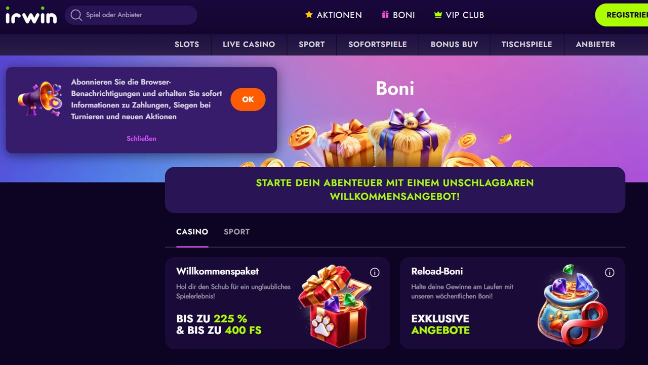 Hier sichern Sie sich die 20 Freispiele und einen guten Bonus. Dafür haben wir das Need for Speed für Sie getestet und die Bedingungen für den Bonus und Besonderheiten untersucht. Zusätzlich werfen wir einen Blick auf die nach dem Registrierungsbonus folgende Bonus-Vielfalt, die Ihnen das Online Casino als Neukunde bereitstellt.