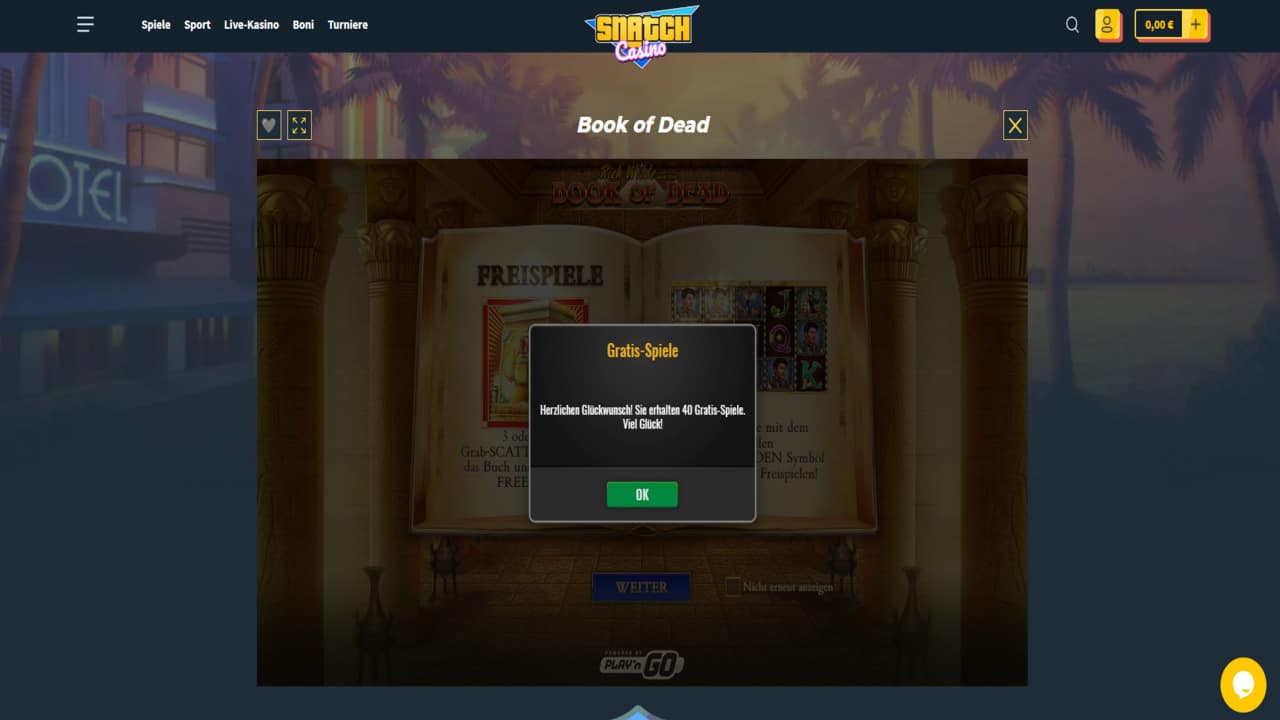 - Nutzen Sie unseren Link (ohne diesen Link gibt es kein Snatch Casino No Deposit Freispiele!)