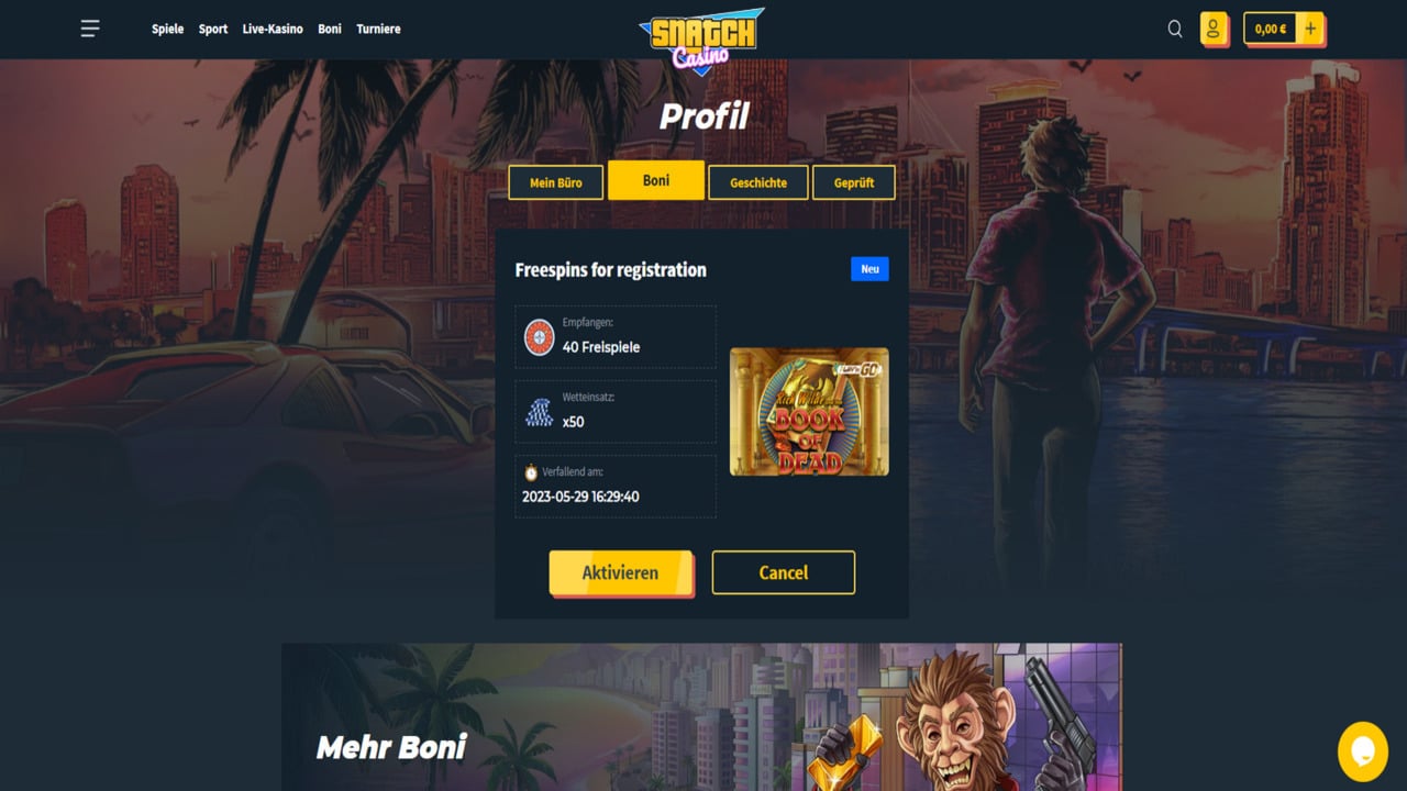 Ihre 40 Freispiele auf Book of Dead finden Sie dann in Ihren persönlichen Bereich unter Boni. Dort sind diese dann auch noch zu aktivieren.