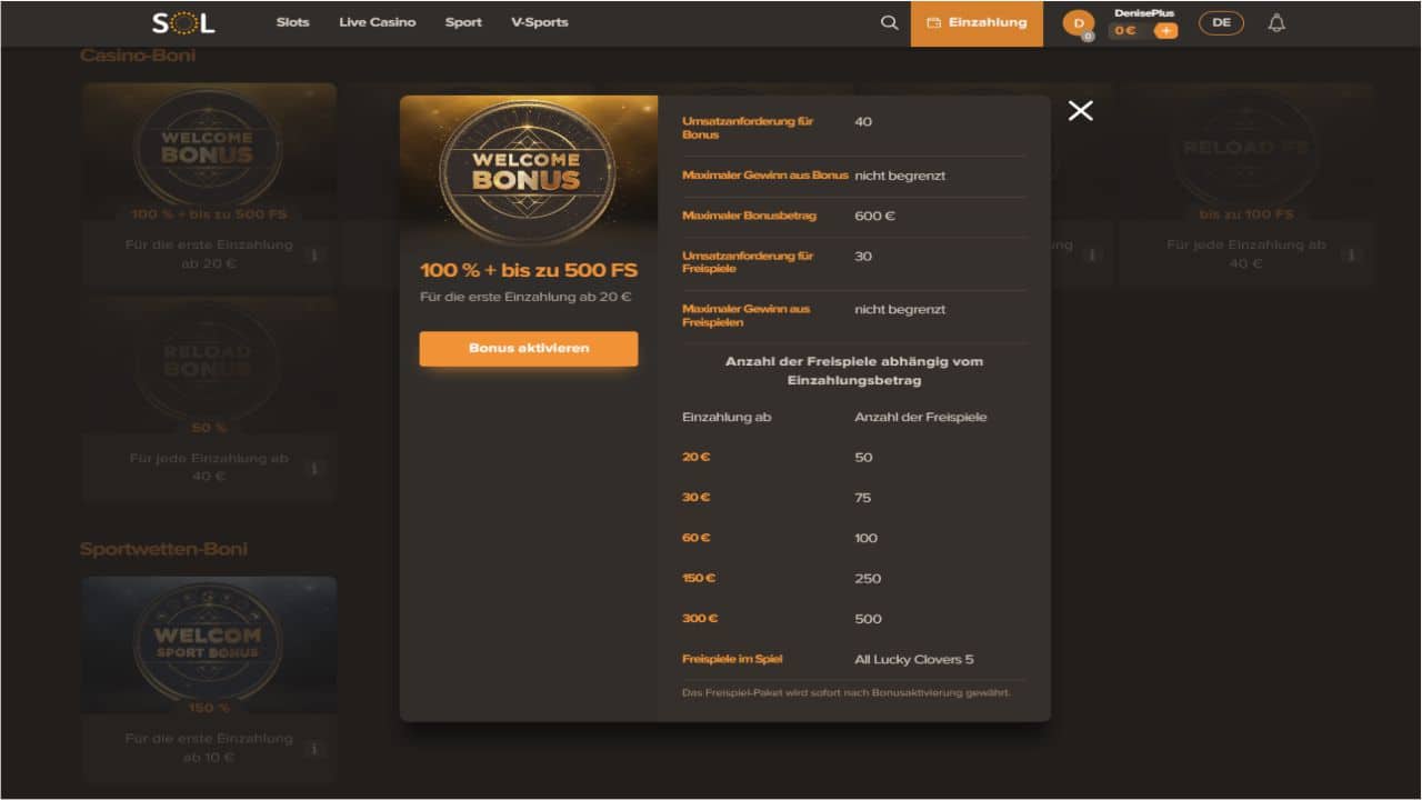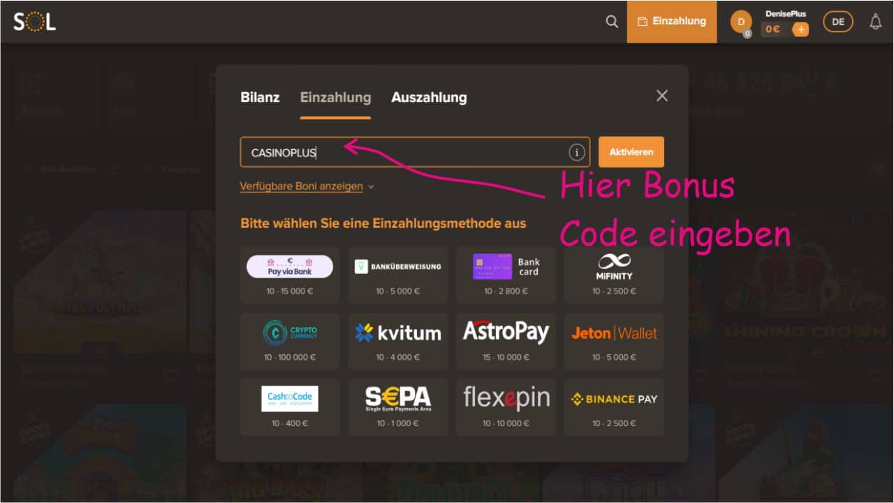 Wie funktioniert der Sol Casino Bonus mit Einzahlung?