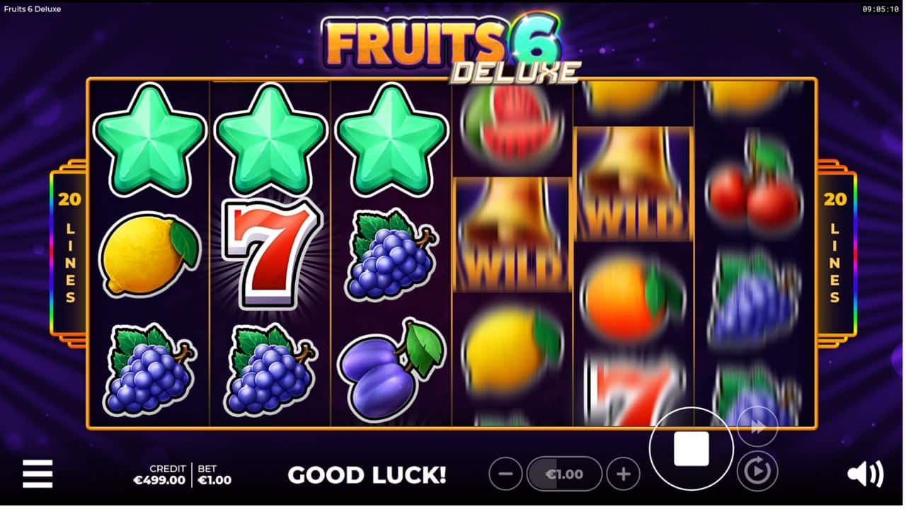 Sammeln Sie vitaminreiche Früchte an einem Klassiker mit einem ungewöhnlich großen Spielfeld und profitieren Sie von diversen Features. Der Fruits 6 Deluxe Spielautomat ist einerseits ein echter