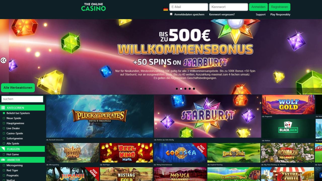 Das 2018 gegründete The Online Casino ist schon ein besonderes Casino, vor allem, wenn es um den Bereich der Spiele geht. Viele Spiele von sehr vielen Softwareanbietern haben in diesem Casino ein Zuhause gefunden. Dazu ist das Casino aber auch in anderen Bereichen sehr gut und insbesondere userfreundlich aufgestellt. Ein gutes Zahlungssystem, viel Sicherheit, ein guter Kundenservice und andere Vorteile können Sie im The Online Casino entdecken.