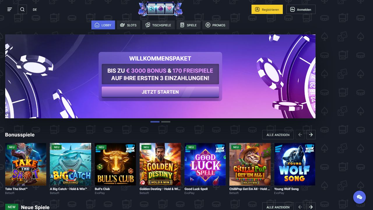 Dieses umfangreiche Portfolio umfasst mehr als 5500 Slots, die in verschiedenen Kategorien zur besseren Orientierung unterteilt sind. Zu diesen Kategorien zählen unter anderem „Alle“, „Beliebt“, „Neu“, „Bonuskauf“, „Hoher RTP“, „Hohe Volatilität“, „Jackpot-Spiele“ und „Spielautomaten“. In der Rubrik „Legendäre Hits“ entdecken Sie besonders bekannte Titel sowie Neuerscheinungen, die sich schnell zu Favoriten entwickelt haben. Beispiele für beliebte Spiele sind etwa Blood Diamond (Nolimit), das mit seinem atmosphärischen Design und packenden Bonusfunktionen überzeugt und Hounds of Hell (Hacksaw), das durch sein düsteres Thema und hohe Gewinnpotenziale besticht. Ebenfalls gefragt sind Triple Pot Gold (Pragmatic Play), das rasante Spielrunden mit lohnenden Features kombiniert und Kingdom Below (Play’n GO ), das in eine geheimnisvolle Unterwasserwelt entführt. Wer es besonders spannend mag, findet mit Infernus (Backseat Gaming) einen hitzigen Slot voller Überraschungen, während Man vs Gator (Elk) mit einer originellen Geschichte und cleveren Bonusmechaniken aufwartet. Für Fans glänzender Symbole und Luxus-Ambiente bietet Money Mansion (Popiplay) ein reizvolles Design mit ansprechendem Gameplay.